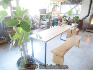 ワークショップの作業などができそうなテーブル。