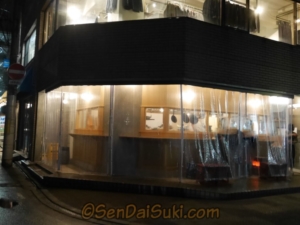 ちょっと見えづらいですが、路面側にも席があります。寒い時期の訪問だったので、ぐるりとカバーにくるまれていますね。